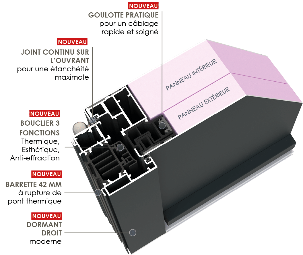 - Cadre d’ouvrant breveté 80 mm haute isolation