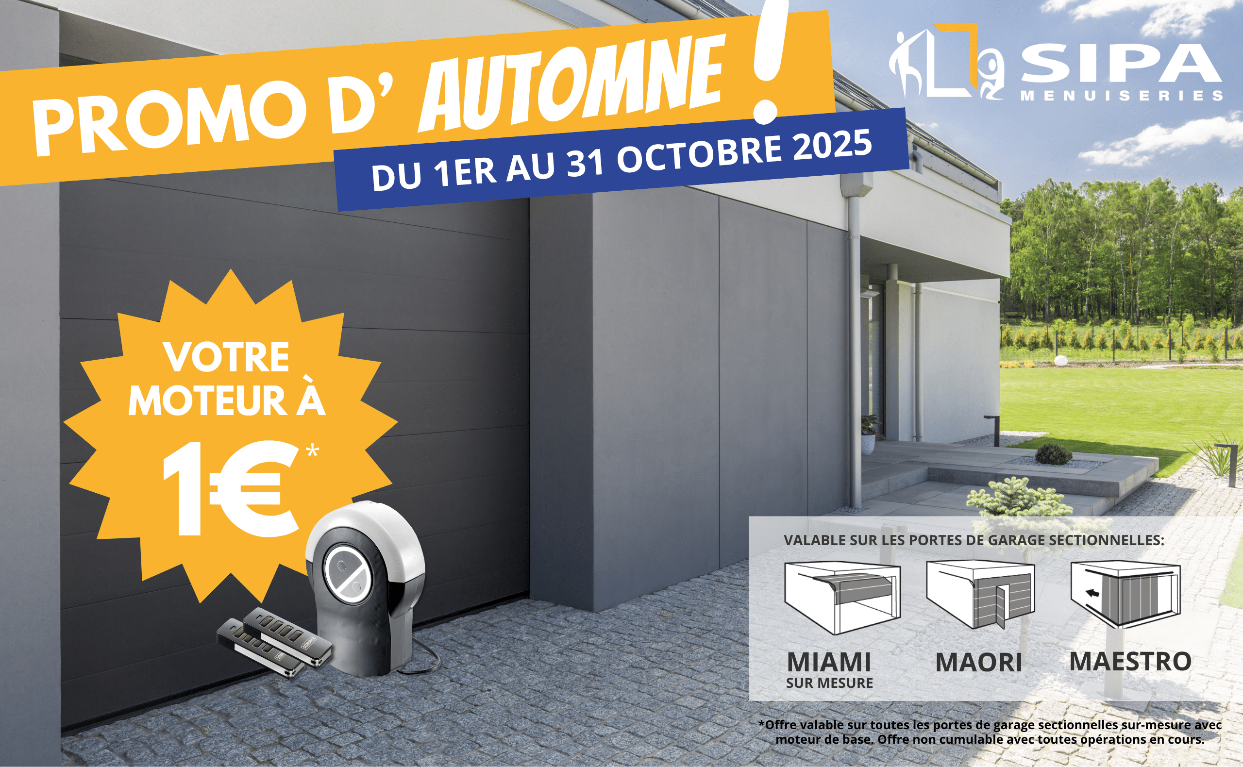 Du 1er au 31 Octobre 2025, bénéficiez d’une promotion exceptionnelle sur les portes de garage sectionnelles grâce à la motorisation à 1€* !